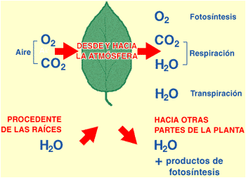 La fotosíntesis solamente se realiza por el día, la respiración se lleva a cabo tanto por el día como por la noche. La respiración de las plantas produce la transpiración o perdida del agua. Cuando falta agua en la atmósfera las plantas tienen la capacidad de cerrar los estomas para no perder agua.